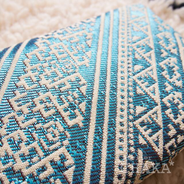 デザイン性にも耐久性にも優れた良質な織り生地で、オリエンタルムードの漂うポーチを製作しました。