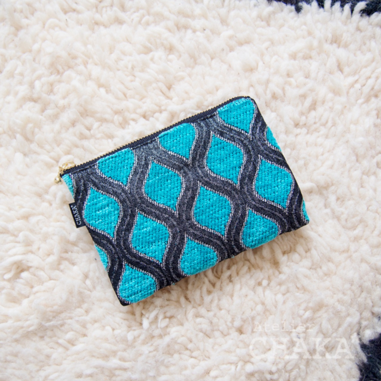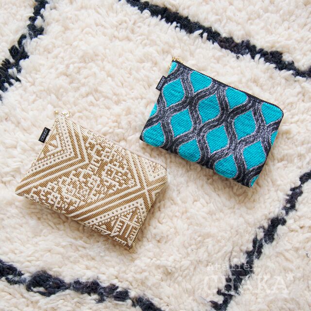 イスラムアートを彷彿とさせるような、深いウードの響きをイメージさせるような、そんな存在感のある織柄のポーチです。