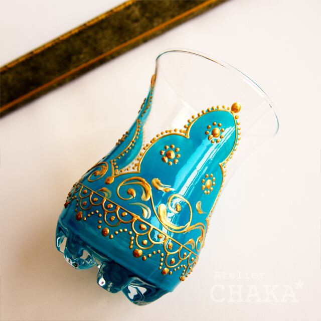 魅惑のチュニジアから、エキゾチックでアラビアンな模様を描いたチャーミングなチャイグラスが届きました。
