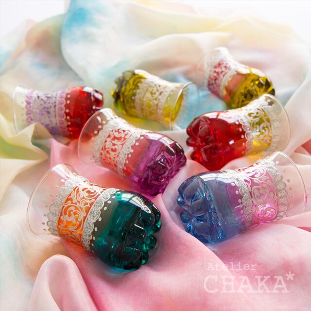 ★グラスの表面に描かれたペイントは大変デリケートです。食洗器のご使用は避け、やわらかなスポンジでやさしく洗ってください。