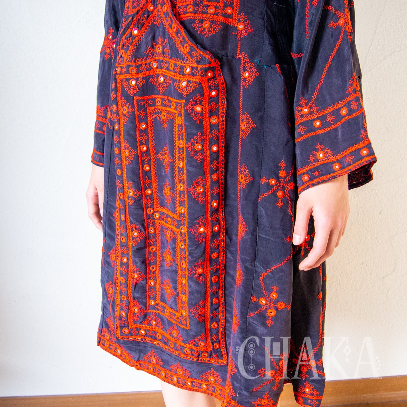 伝統的な幾何学模様に小さな鏡をあしらったミラーワーク刺繍が